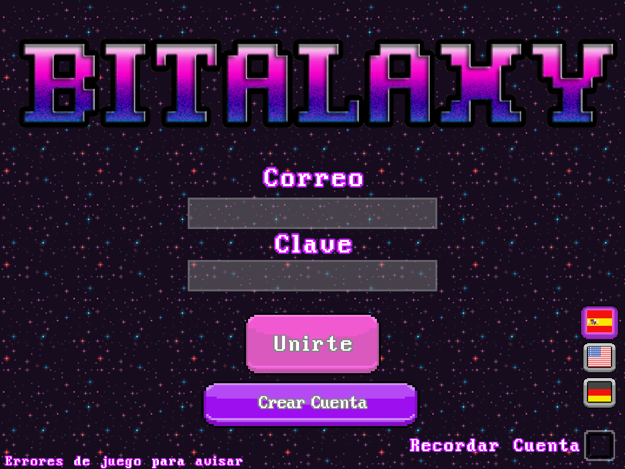 Iniciar sesion en BITALAXY. Contiene 3 Idiomas: Espanol, ingles y Aleman.